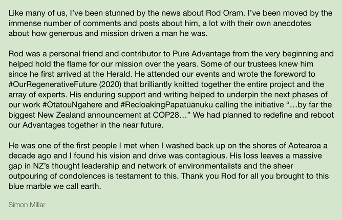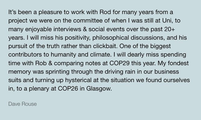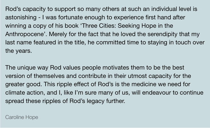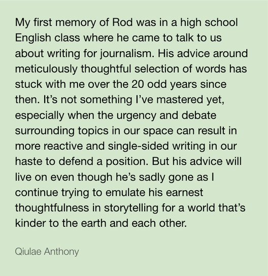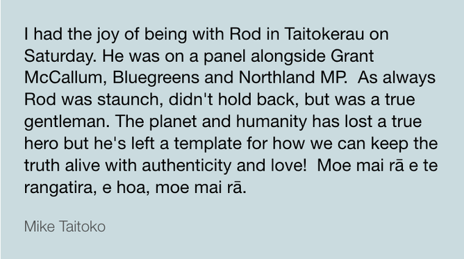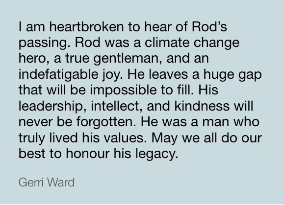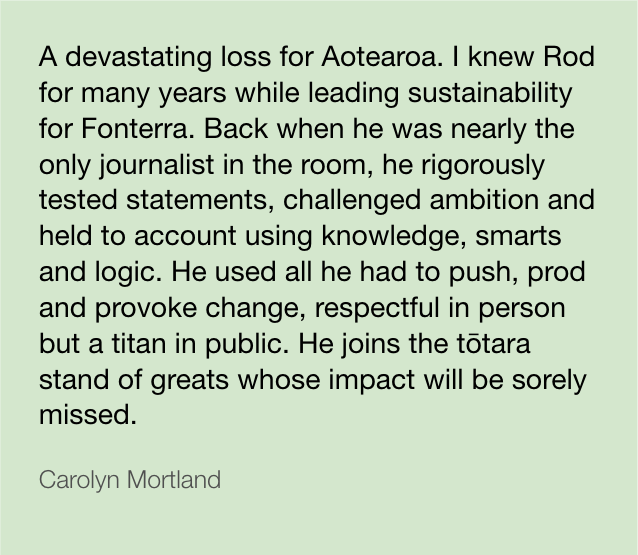 The flowing tributes hold Rod up as an almighty hero for the Aotearoa climate movement, an astute and articulate journalist, and above all, a gentleman who gave his kindness, time, and mentorship generously.